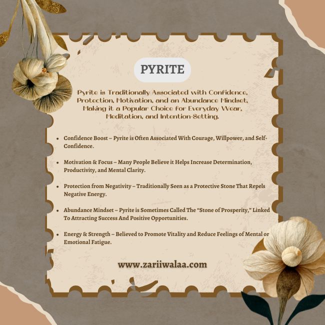 Pyrite Bracelet, also Known as the Stone of Wealth & Protection, is Believed to Attract Abundance, Success, and Confidence. Its Strong Grounding Energy Helps Shield Against Negative Vibrations while Enhancing Willpower, Focus, and Determination. Wearing a Pyrite Bracelet Supports Financial Growth, Career Stability, and Inner Strength, Making it Ideal for Daily Wear and Manifestation of Goals.