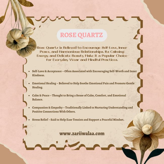 Rose Quartz is Believed to Encourage Self-Love, Inner Peace, and Harmonious Relationships. Its Calming Energy and Delicate Beauty Make it a Popular Choice for Everyday Wear and Mindful Practices.